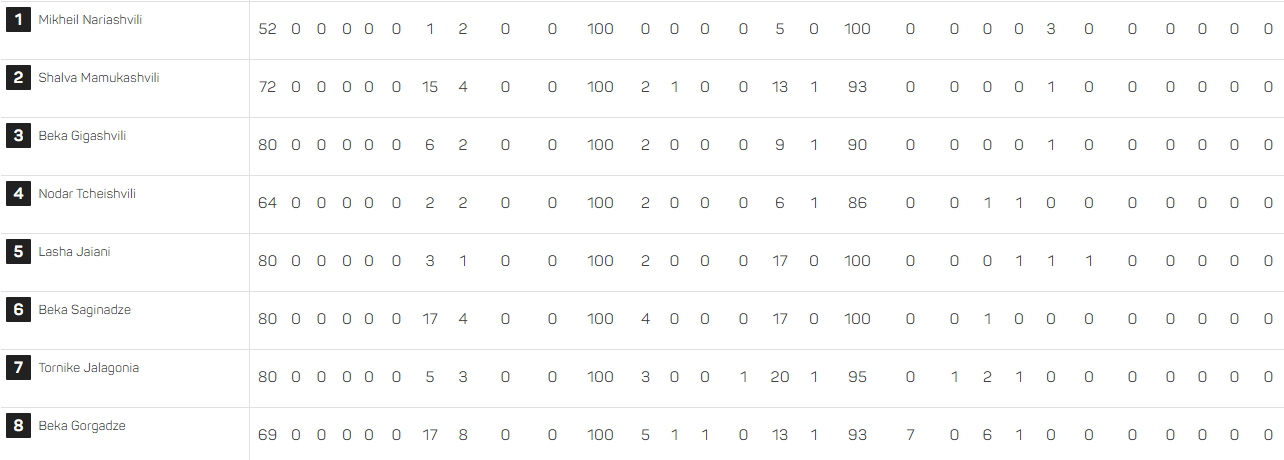 იხილეთ "ბორჯღალოსნების" ინდივიდუალური სტატისტიკა.![]()