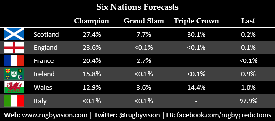ცნობილმა სარაგბო პროგნოზების გამოცემა Rugby Vision-მა, 6 ერის მეორე ტურის წინ, განახლებული საჩემპიონო შანსები შემოგვთავაზა.