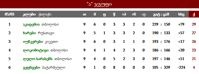 ამრიგად, "იუნკერებმა" 26 ქულა დააგროვა და იმ შემთხვევაში თუ ბოლო ტურში აუტსაიდერ "ვეფხვებს" მოუგებს, პლეი-ოფში აუცილებლად გავა, ხოლო "ლოკომოტივს" 23 ქულა გავა და მხოლოდ იმ შემთხვევაში გადავა მოწინავეთა ჯგუფში, თუ თავად "აკადემიას" მოუგებს, ხოლო "ხარები" ან "იუნკერები" წააგებენ.
