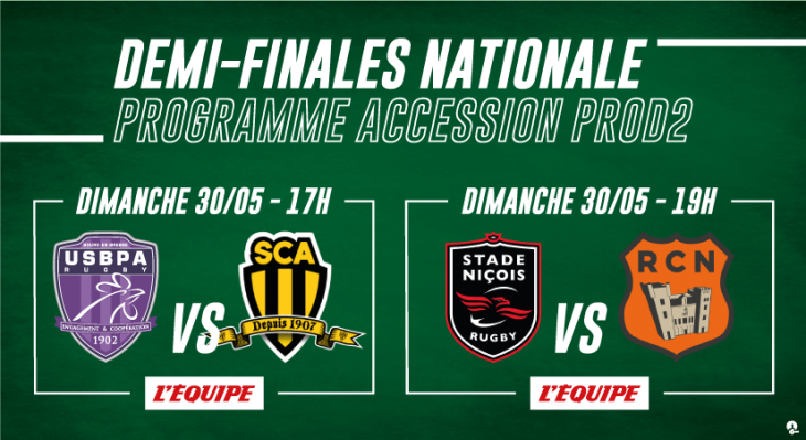 ორივე ნახევარფინალური დაპირისპირება 30 მაისს გაიმართება. თბილისის დროით 19 საათზე "ბურგ-ენ-ბრესი" საკუთარ მოედანზე "ალბის" დაუხვდება, ხოლო 21 საათზე "ნიცას" და "ნარბონის" დაპირისპირება დაიწყება. გამარჯვებული გუნდები პრო დ2-ის საგზურს მოიპოვებენ.