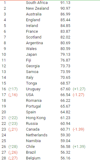შაბათ-კვირას ამერიკის კონტინენტის კვოტით 2023 წლის მსოფლიო თასის საკვალიფიკაციო ეტაპის მატჩები გაიმართა, რამაც "მსოფლიო რაგბის" რეიტინგში ცვლილებები გამოიწვია.